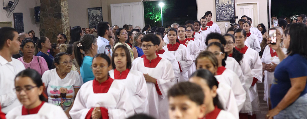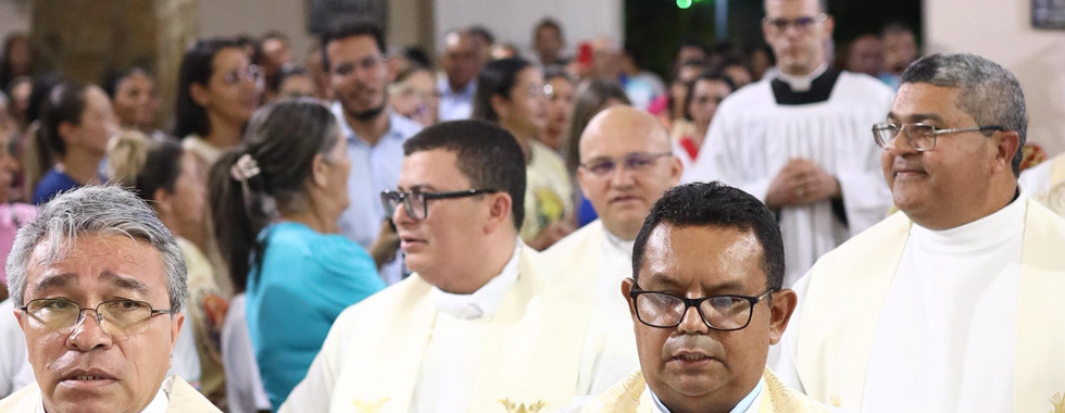 A Santa Missa contou com a concelebração dos padres Francisco Luís, José Cláudio, Ricardo, Maurício, Raimundo, Roberto Manuel, Clenisson, Mário e Gedeão, reforçando a unidade do clero e a comunhão entre os pastores e o povo de Deus, tornando ainda mais solene este momento para a paróquia e para a Diocese.