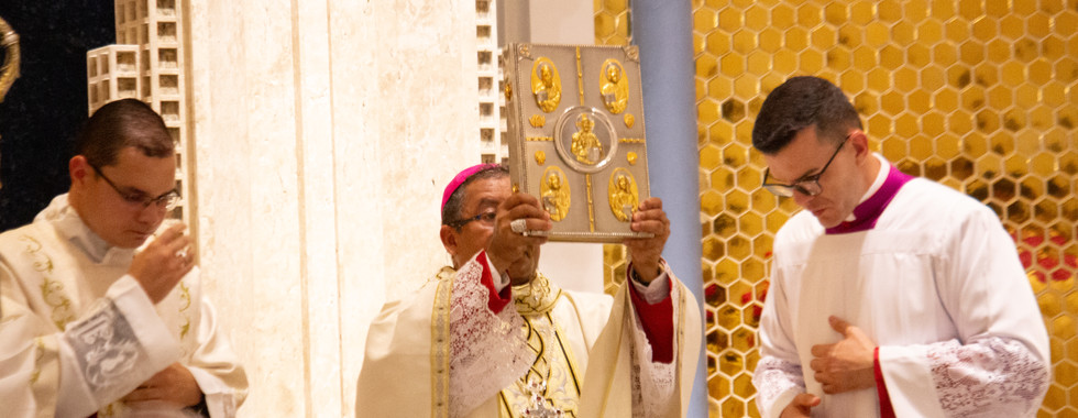 Após a homilia, teve lugar o rito da apresentação dos óleos. O Óleo dos Catecúmenos foi apresentado pelo Padre Gustavo Martins e será utilizado nas celebrações do Batismo. Em seguida, o Óleo dos Enfermos foi apresentado pelo Padre Diego Souza, destinado ao sacramento da Unção dos Enfermos. Por fim, o Santo Crisma foi apresentado pelo Padre Thiago, óleo que será utilizado nas celebrações da Crisma e também nas ordenações realizadas em nossa Diocese.